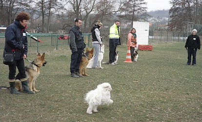 | printemps-été 2012 Quand il fait beau les séances d'éducation rassemblent de nombreux chiens pour des exercices en groupes | ||